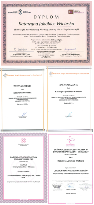 - Członkostwo w Polskim Towarzystwie Psychologicznym, stała superwizja